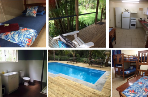 They offer Cabin and House accomodation. Each is fully self contained, private bathrooms, laundry, fully airconditioned, TV, Wifi, BBQ, outdoor private decking.